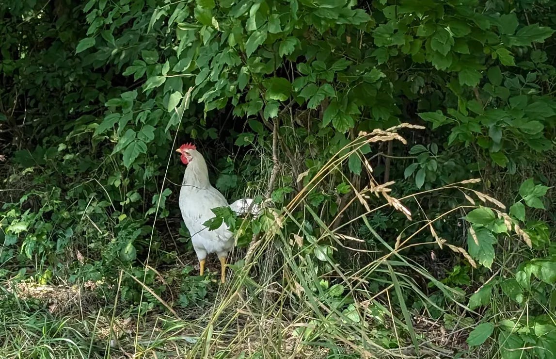 Even though I didn’t have my camera, I always keep an eye out for interesting sights. But a chicken? That was definitely unexpected.